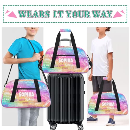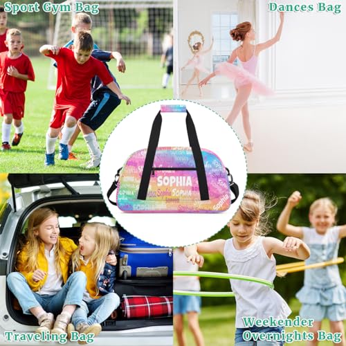 HOT ! Custom Dance Bag Girls Sport Duffel Bag, Personalized Kids Gym Bag Customize Travel Duffle Bag with Name, Watercolor Colorful Pink