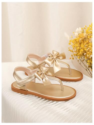 GORGLITTER Girl's Cute Bow Flat Sandals Metallic Gold Ankle Strap Thong Slides Toe Post Vacation Shoes 5