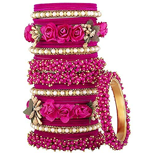 Aheli Green Floral Chuda Chura Bangle Set Wedding Fashion Jewelry Gift for Women 2.6 Inch 6