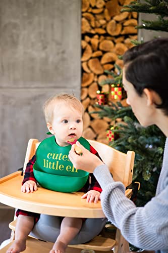 Pearhead Christmas Baby and Toddler Bib Set, Holiday Baby Gifts, Silicone Toddler Bibs with Food Catcher Pocket, Dishwasher Safe, BPA Free, Cutest Little Elf, Set of 2 (Pack of 2) 5