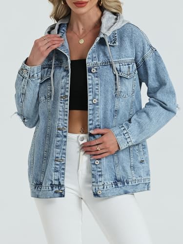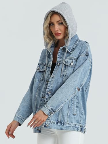 • Fabric: This oversized denim jackets for women made of high quality denim cotton, super soft,comfortable,and the style across seasons. This denim jacket with hood is suitable for anyone, include any teens girls, juniors, mom, ladies