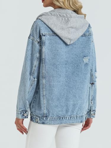 Women's Oversized Denim Jacket Long Distressed Ripped Trucker Jean Jackets Coat With Detachable Hood 7
