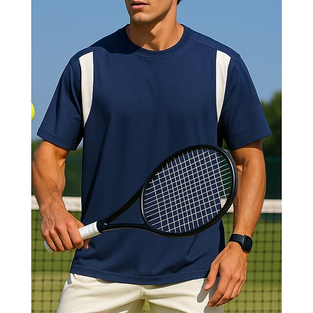 $23.99 - Men's Patchwork Tennis Tee Short Sleeves Sweat-Wicking Moisture Wicking Breathable Tennis Golf Pickleball Crew Neck Blue Purple Grey Tennis Clothing 2025. Shop for cheap Men's Shirt online? Buy at lightinthebox.com on sale today!