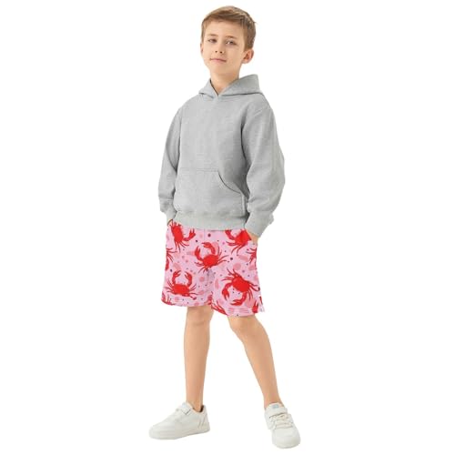 HOT ! Vibrant Red Crabs Athletic Shorts with Zipper Pockets, Youth Boys Athletic Running Shorts for Summer