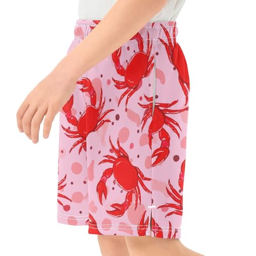 Vibrant Red Crabs Athletic Shorts with Zipper Pockets, Youth Boys Athletic Running Shorts for Summer 7