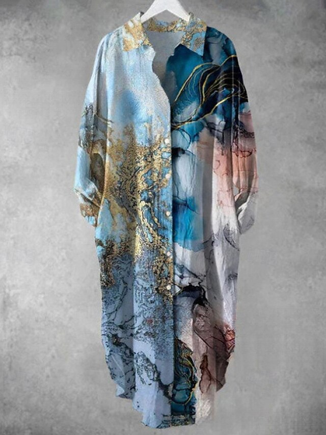 More information about Women's Midi Dress Shirt Dress Casual Dress Fashion Modern Daily Beach Weekend Regular Fit Graphic Long Sleeve Shirt Collar Blue Green Spring Fall