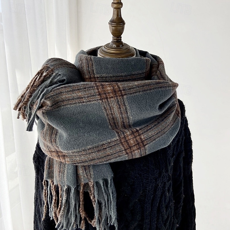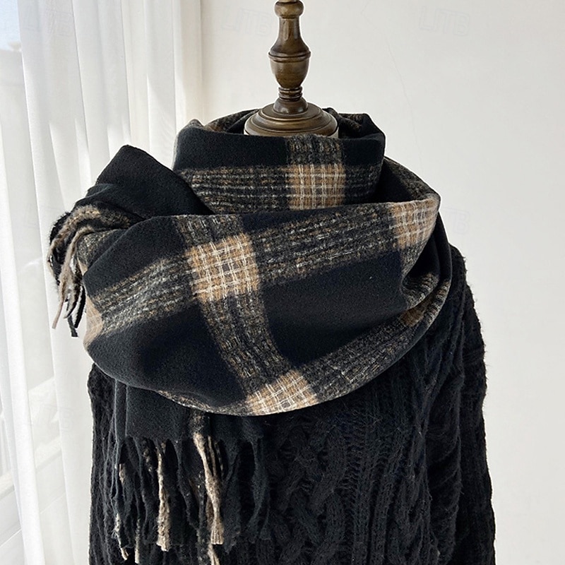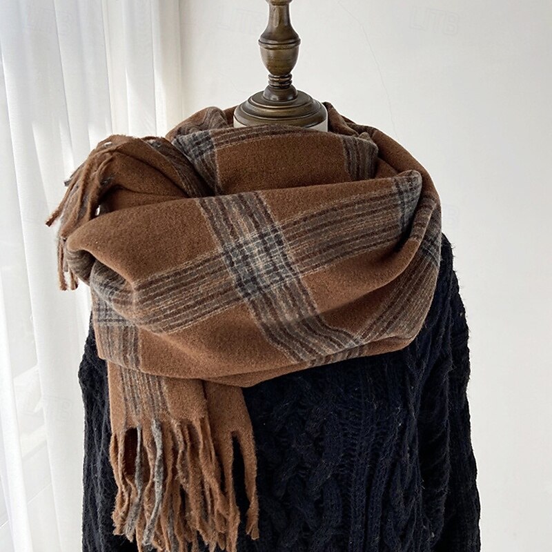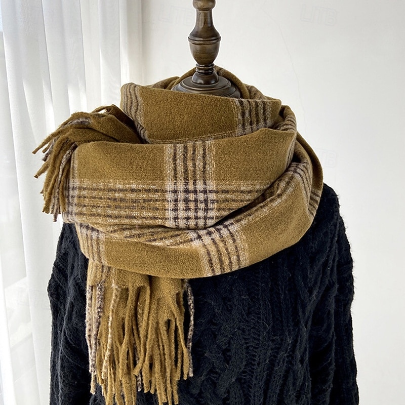 HOT ! Women's Rectangle Scarf Women's Shawls & Wraps Street Daily Date Camel Black Yellow Scarf Plaid