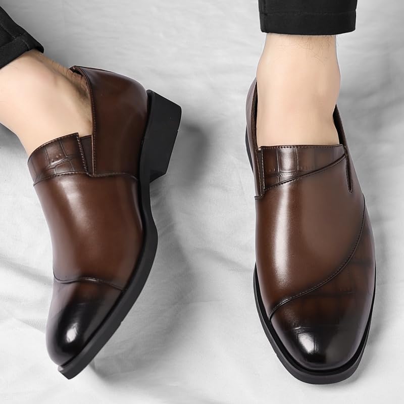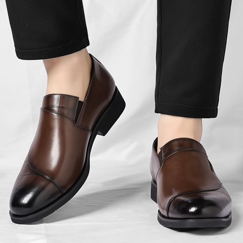 “Men's Leather Upper Slip - on Loafers, Classic Round Toe Business Formal Dress Shoes with Polished Toe Detailing and Low - Profile Heel” 6