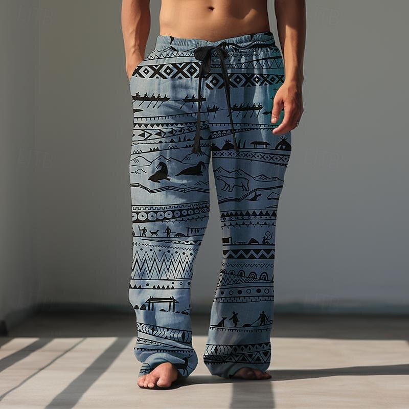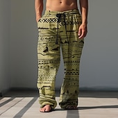 Highlights [Fabric & Fit] These men's casual pants are crafted from a high-quality polyester fabric, ensuring a lightweight and breathable experience perfect for spring and summer. Designed with a relaxed fit and mid-waist line, these trousers offer comfort without sacrificing style, making them an ideal choice for warm-weather wear. [Design Highlights] Showcasing an ethnic, Hawaiian style, these pants feature a striking 3D tribal-inspired print that includes geometric and animal motifs. The vibrant designs in blue, brown, and green add a bold and adventurous touch, while the straight leg design offers a classic, versatile silhouette that complements any casual wardrobe. [Occasions] Perfect for holidays, casual outings, and weekend getaways, these trousers are versatile enough for both indoor and outdoor activities. Whether you're relaxing at home or exploring new destinations, they add a touch of ethnic flair to your everyday ensemble. [Size Range] Available in a variety of sizes from S to 3XL, these pants are designed to fit a wide range of body types, ensuring a comfortable and flattering fit for everyone.