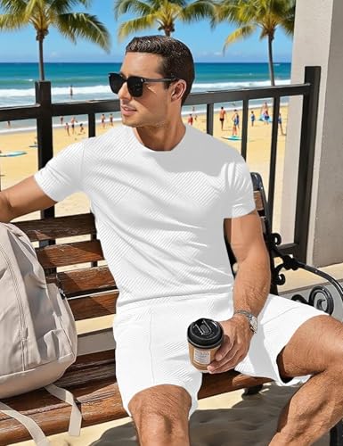 • DESIGN - Features a muscle-fitting crew neck tee that accentuates your physique, paired with elastic drawstring shorts with functional pockets. The classic solid colors and geometric texture create a timeless athletic look.