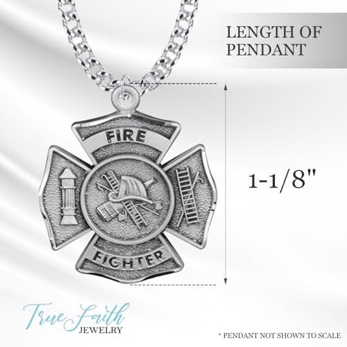 True Faith Jewelry Sterling Silver St Florian Fire Fighter Shield Medal Patron Saint Pendant Necklace, 1 Inch 3