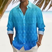 More information about Men's Geometric Gradient Color Shirt Button Up Shirt Long Sleeve Fashion Casual Vacation Daily Streetwear Spring Fall Turndown 3D Print Collared Shirts Front One Pocket Blue