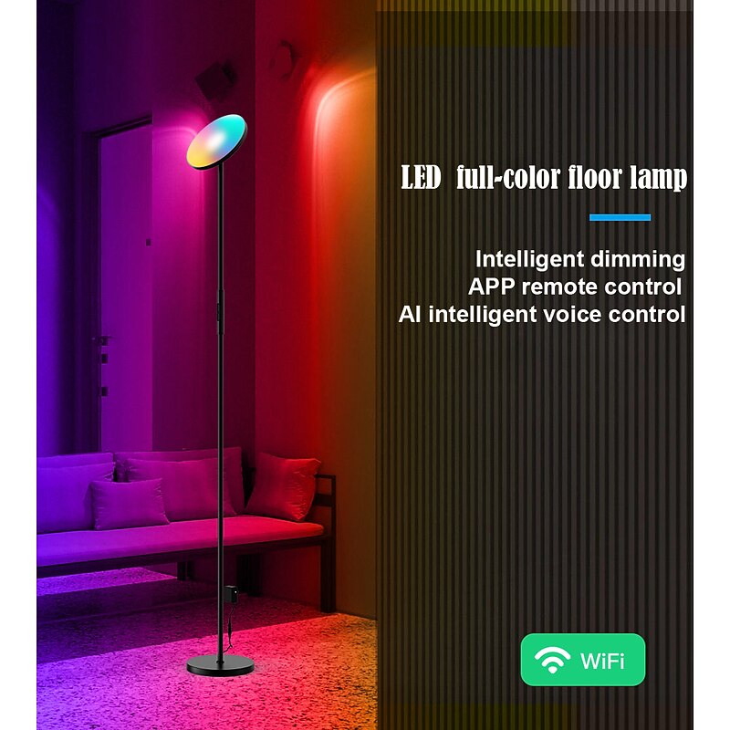 Smart RGB Floor Lamp Works with Alexa Google Home, WiFi Remote Modern Tall Standing Light, Super Bright 2000LM Color Dimmable for Living Room, Bedroom (Black) 13