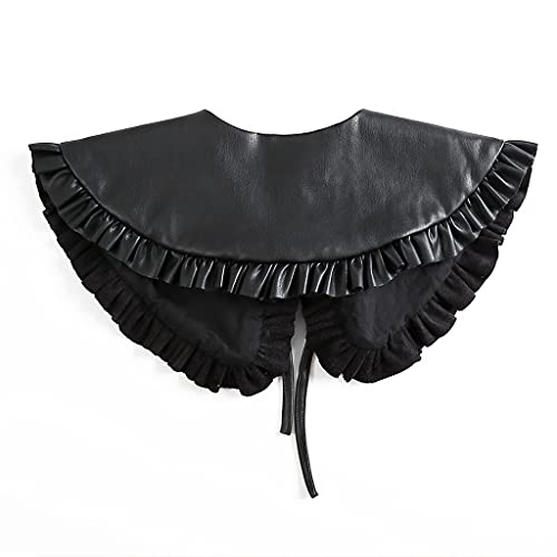 Women Faux Leather Black False Collar Shawl for Doll Ruffled Wrap Self-Tie Ponch 5
