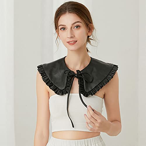 More information about Women Faux Leather Black False Collar Shawl for Doll Ruffled Wrap Self-Tie Ponch