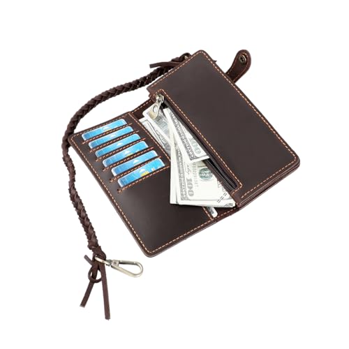 Men's genuine leather folding chain wallet, retro wallet (Black) 6