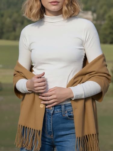 VENVSBEE Shawl Wraps For Women Fringe Shawl With Buttons Versatile Scarf Lightweight Cape Cardigan Spring Fall Winter 5