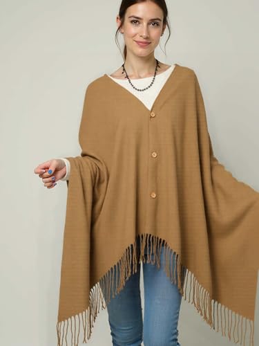 VENVSBEE Shawl Wraps For Women Fringe Shawl With Buttons Versatile Scarf Lightweight Cape Cardigan Spring Fall Winter 2