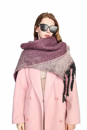 Yatemiole Women's Cashmere Gradient Color Warm Scarf Winter Soft Shawl Women (Pink) 2