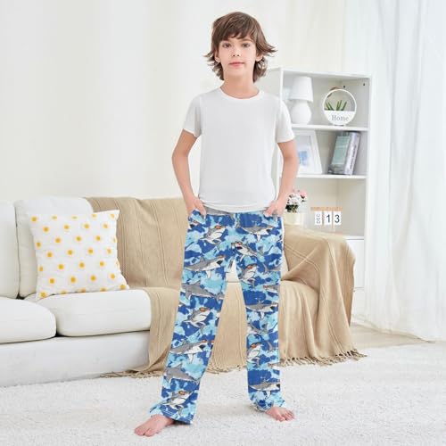 Cool Shark Camouflage Boys Long Pants Soft Trousers Elastic Waist Kids Lounge Bottoms with Pockets S-XL 4