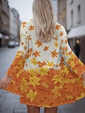 More information about Women's Winter Coat Trench Coat Lightweight Comfortable Print Open Front Vintage Fashion Casual Floral Vacation Casual Long Collarless Regular Fit Long Sleeve Outerwear Orange Spring Fall