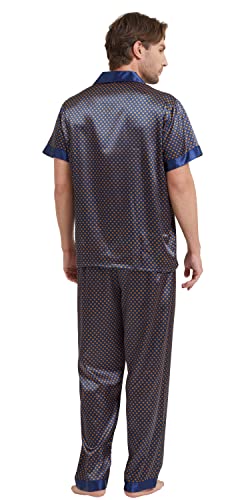 Men's Silk Satin Pajama Set Short Sleeve Loungewear Button Down Sleepwear with Long Pants 4