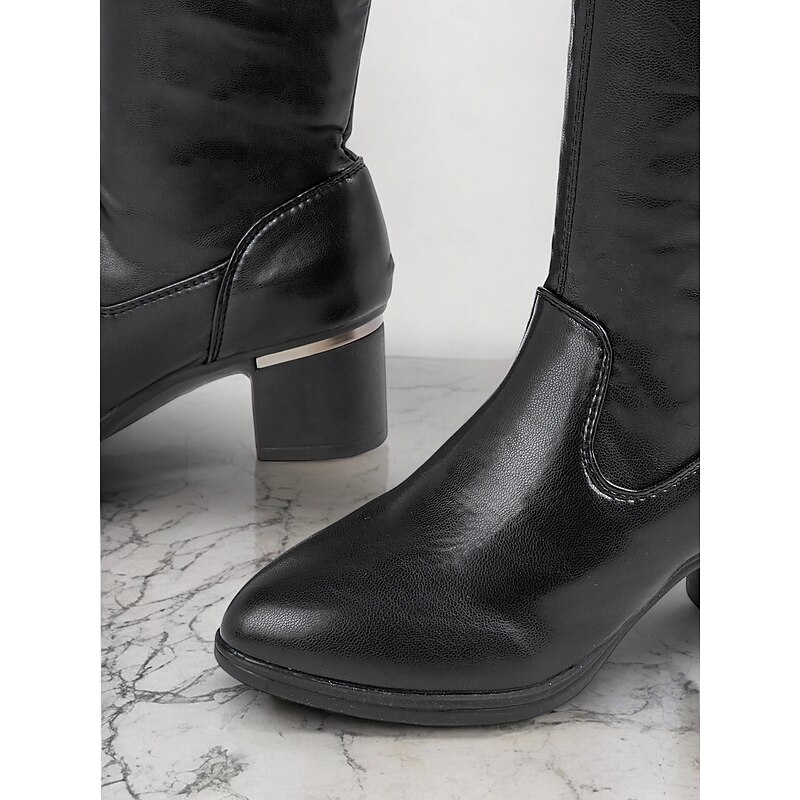 Women's Black Over-The-Knee Faux Leather Boots with Block Heel – Elegant Thigh-High Boots for Winter Fashion and Evening Outfits 4