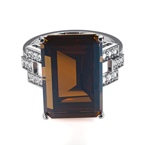 925 Sterling Silver Women Rings 5.9ct Smoky Quartz Statement Rings for Women Girls Cubic Zirconia Engagement Wedding Jewelry Size 6-10 5