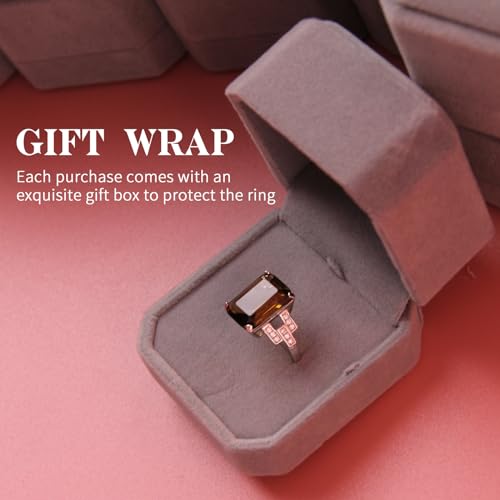 925 Sterling Silver Women Rings 5.9ct Smoky Quartz Statement Rings for Women Girls Cubic Zirconia Engagement Wedding Jewelry Size 6-10 3
