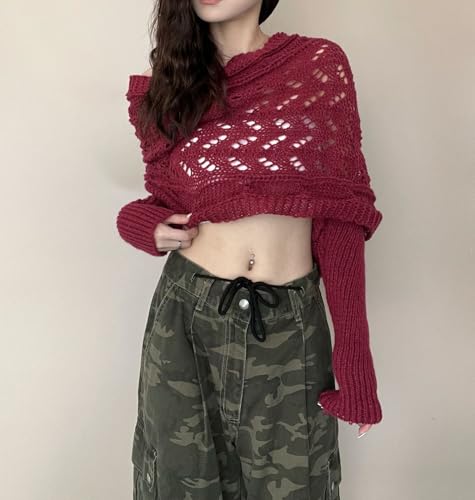 HOT ! Emmababy Crochet Sweater Wrap, Knit Scarf with Sleeves Plus Size, Knitted Cable Wrap