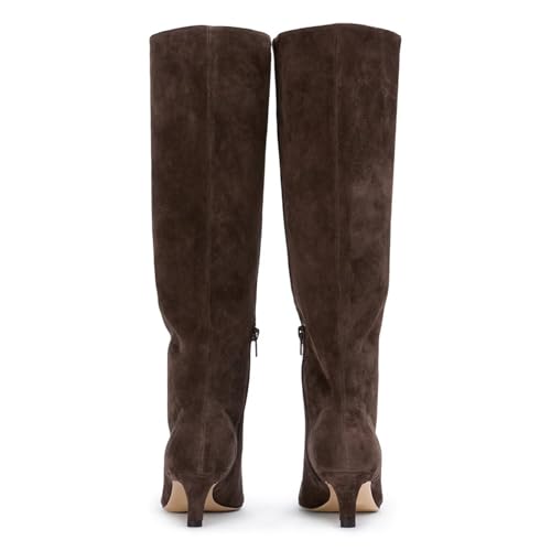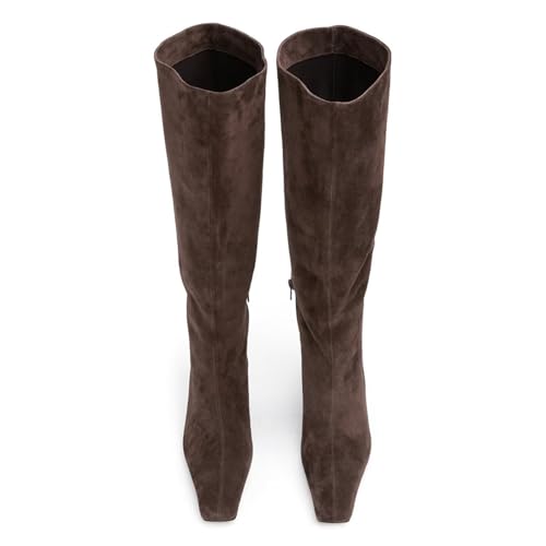 Agodor Women's Stiletto Knee High Boots Pointed Toe High Heel Faux Suede Leather Side Zipper Boots 4