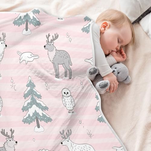 More information about Custom Nordic Animal Deer Pink Stripe Star Baby Swaddle Blankets Soft Customize Kitten Monogrammed Blankets for Nursery Stroller Crib 30x40in cobijas para