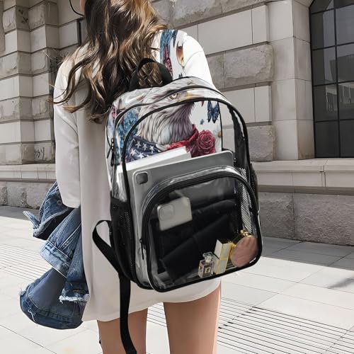American Flag Bird Butterfly Flower Clear Backpack Heavy Duty See Through Transparent PVC BookBag for Kids Boy Girl School Work 1