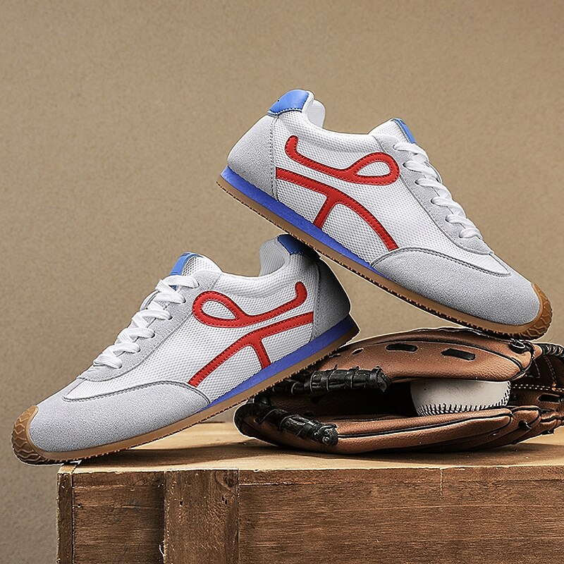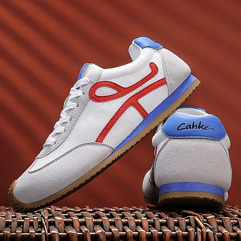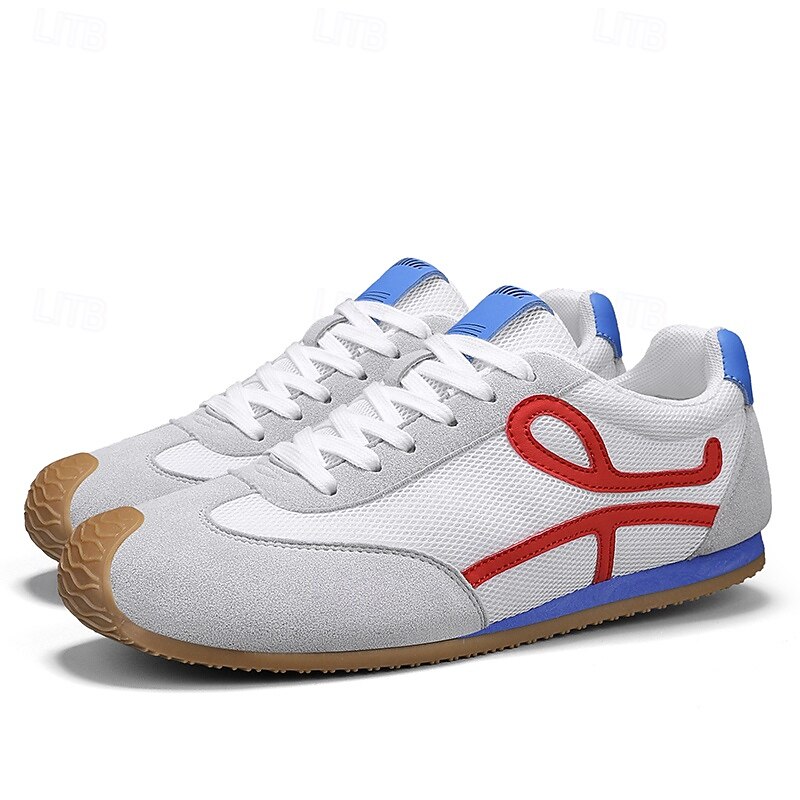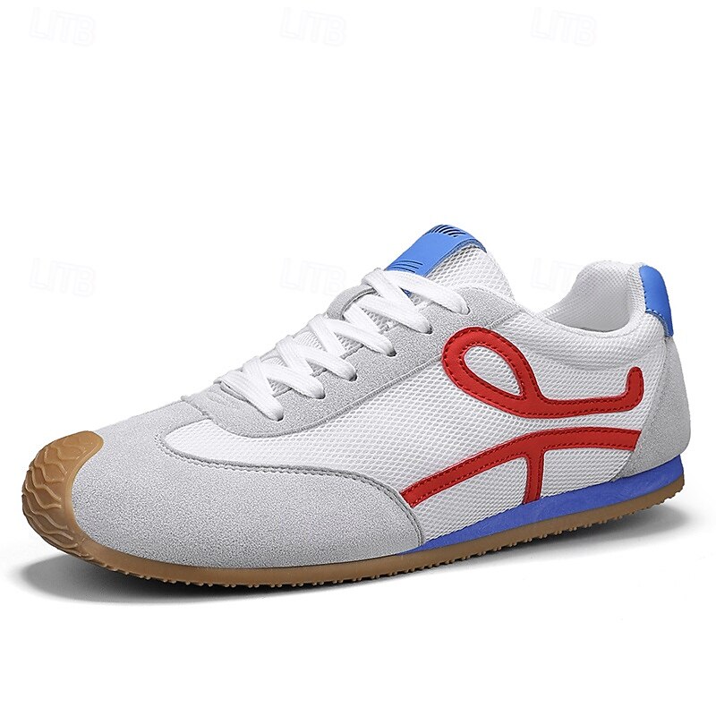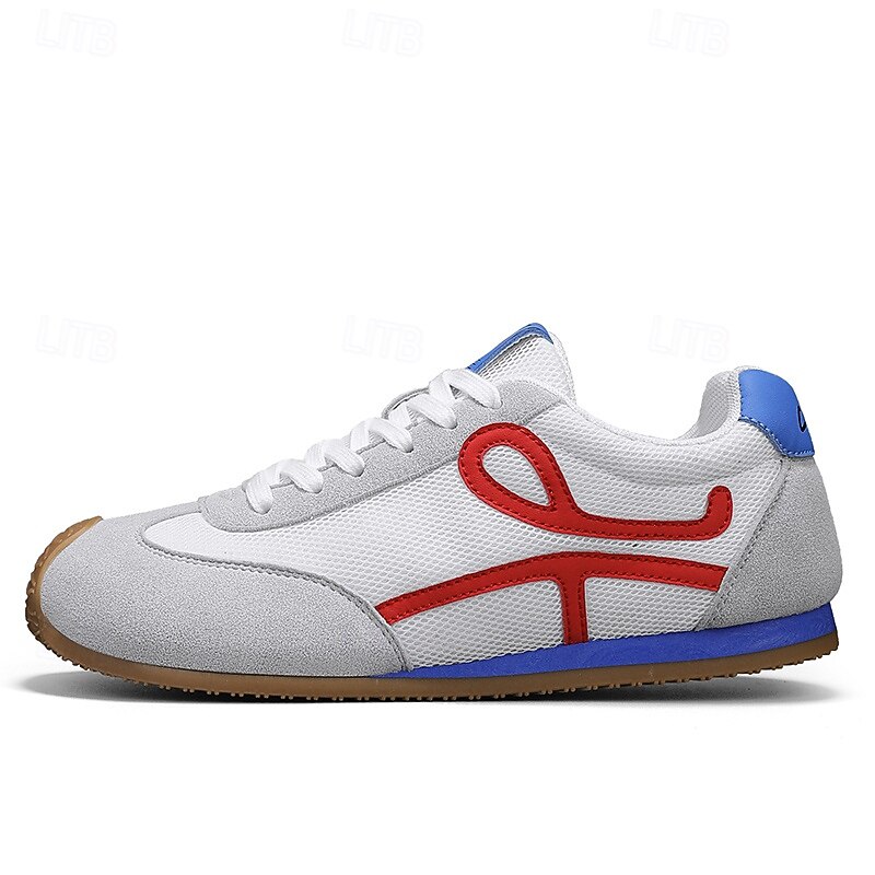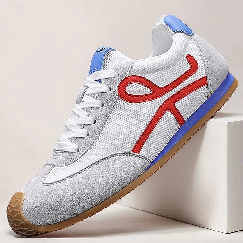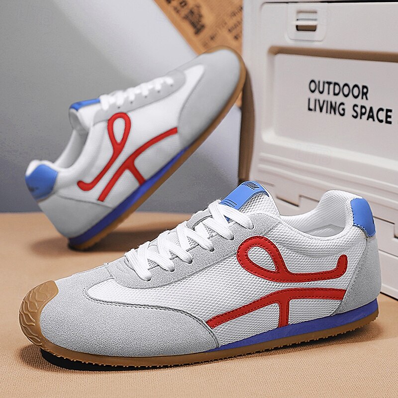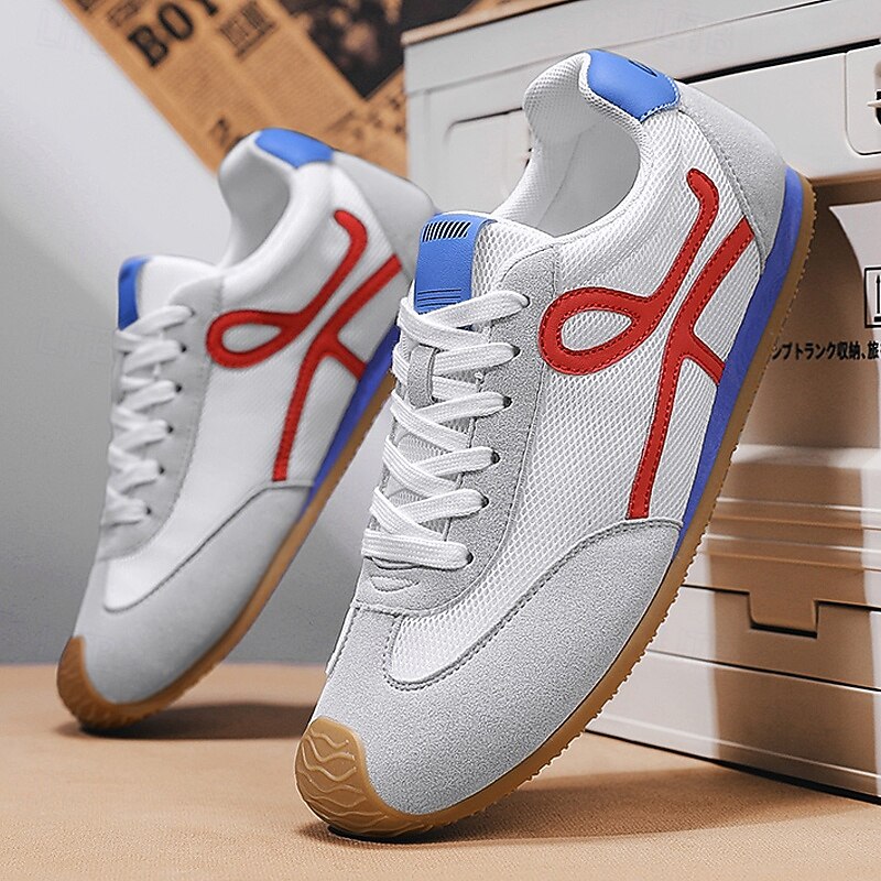 HOT ! Men's White Sporty Sneakers with Red and Blue Accents - Casual, Lightweight, Ideal for Active Lifestyle and Outdoor Activities