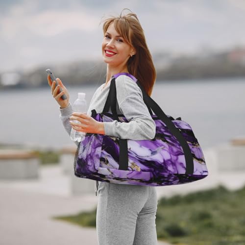 Purple Marble Print Travel Hand Travel Bag Weekender Overnight Carry On Tote Foldable Crossbody Bag 3