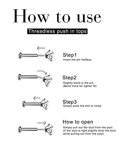 Jewseen G23 Titanium Cartilage Studs 16G Helix Earrings Flat Back Stud CZ Cartilage Earrings Opal Lip Rings Threadless Push in Lip Stud Medusa Monroe Piercing Jewelry Tragus Conch Nose Piercing 6