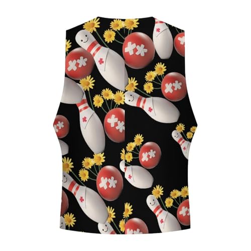 Ball Pin Bowling Sports Men's Suit Vests Business Formal Dress Vest V-Neck Waistcoat for Wedding Casual 1