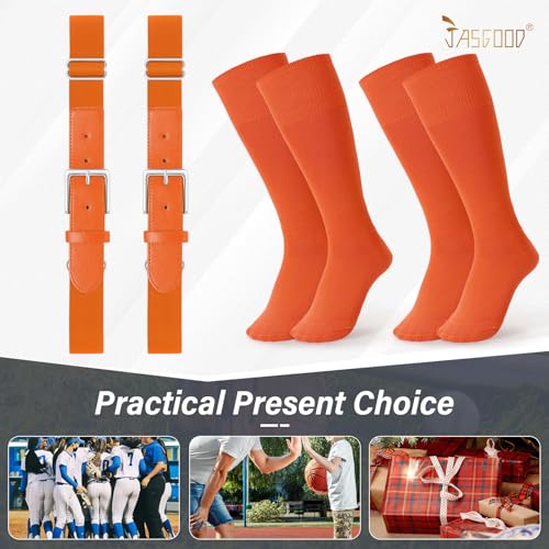 JASGOOD 2 Pack Baseball Belt and Socks Combo Set Adjustable Softball Belt and Socks Elastic Waist Belt for Youth and Adult 4