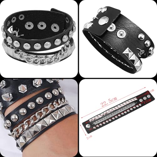 More information about 4 Pcs Leather Studded Bracelets for Women, Mens Spiked Punk Rock Grunge Cuff Wristbands Emo Accessories Set for 80s 90s Outfits