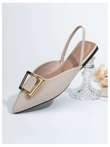 More information about OYOANGLE Women's Metal Decor Pointed Toe Slingback Flats Slip on Ankle Strap Flat Shoes