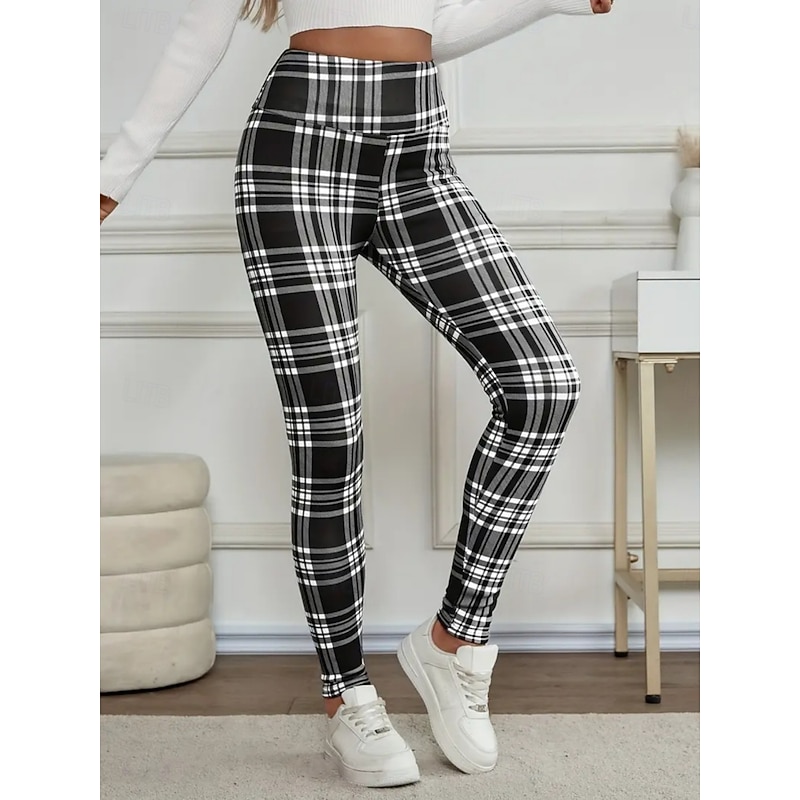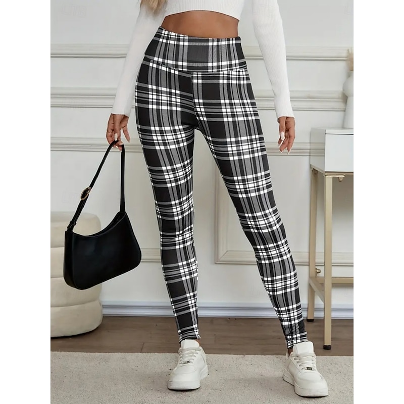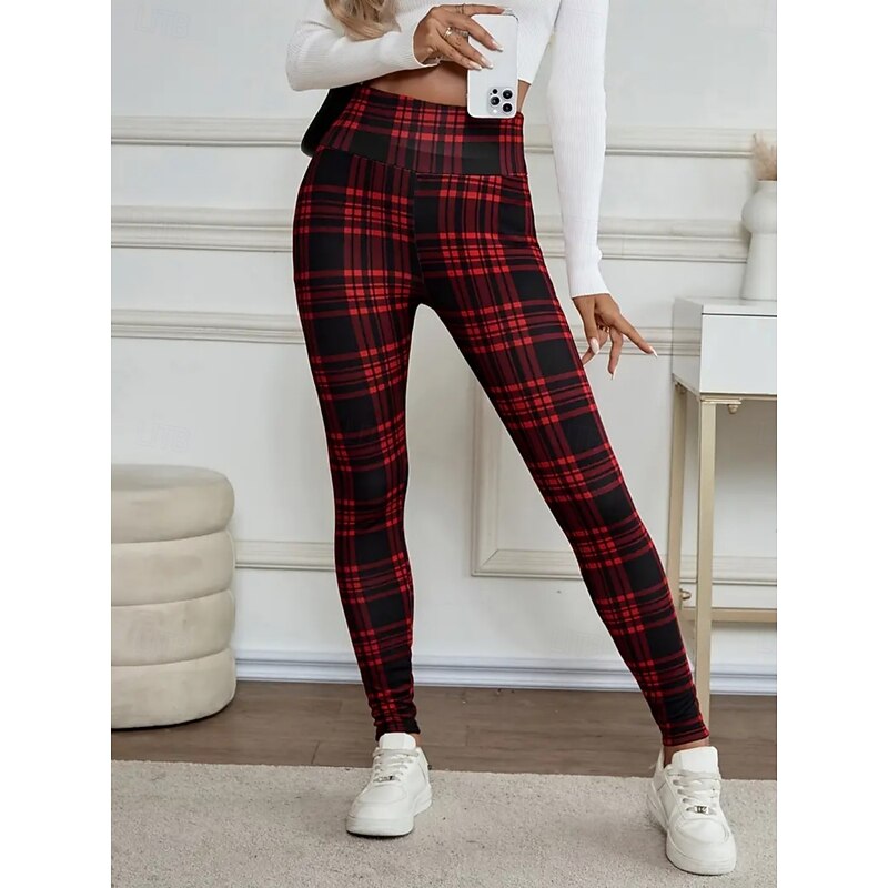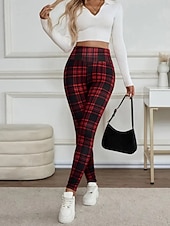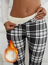 More information about Women's Fleece Pants Chinos Leggings Fashion Streetwear Basic Full Length High Waist Plaid Printing Comfy Soft Comfortable High Elasticity Outdoor Street Red Gray Spring Fall Winter Regular Fit