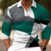 More information about Men's Multi Color Polo Shirts Golf Shirt Long Sleeve Polo Shirts Collared Shirts Casual Business Casual Party Evening Wear Dailywear 3D Print Buttons Spring Fall Winter Blue Green