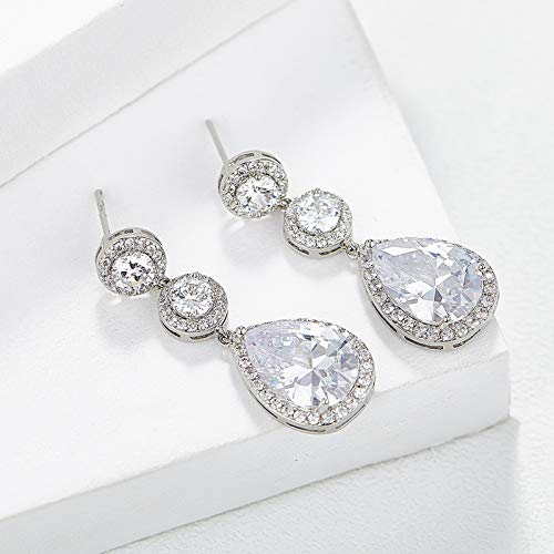 • 【Design】:The teardrop wedding earrings are made with halo set clear cubic zirconia round crystals and a large drop cz crystal. Great for brides, bridesmaids, mother of the bride, mother of the groom.