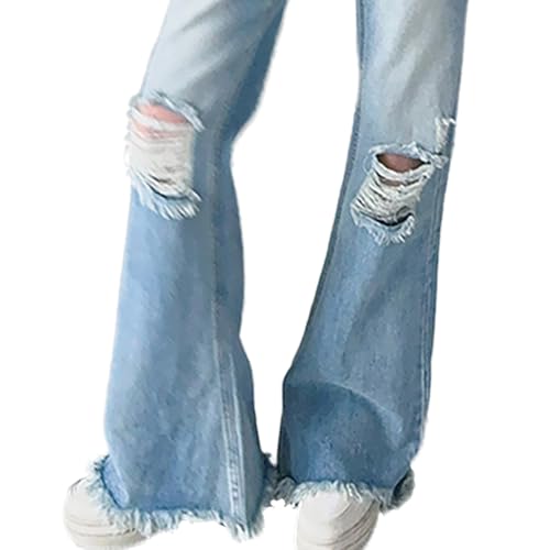 HOT ! Girls' Ripped Baggy Jeans, High Waisted Flared & Wide Leg Denim Pants - Fashion Distressed Denim Trousers