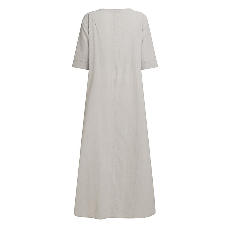 Women's ArmyGreen Black Wine Summer Spring Maxi long Dress Linen-Inspired Dresses Casual Dress Daily Basic Casual Home Daily Beach Loose Fit Plain Crew Neck 4
