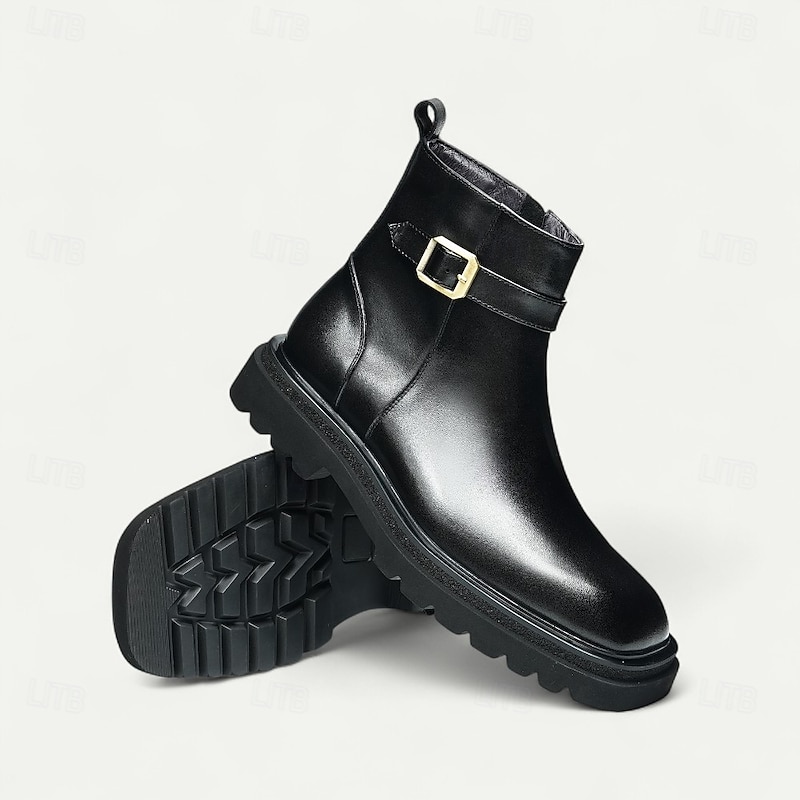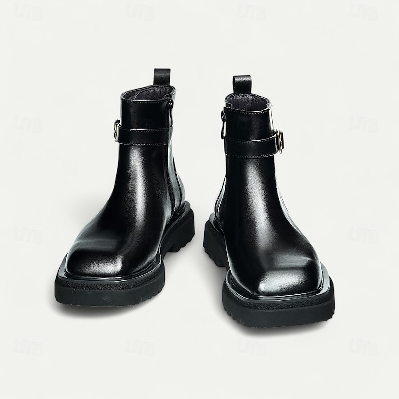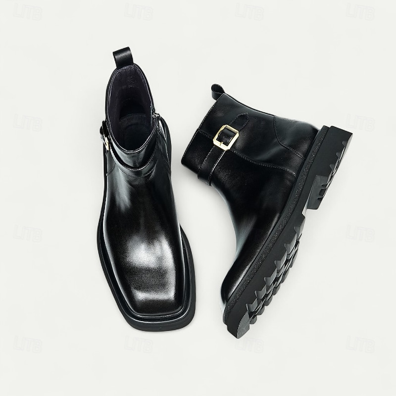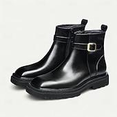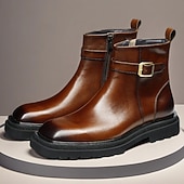 More information about Men's Brown Buckle Ankle Boots Classic Side Zip Casual Boots with Decorative Strap for Office, Parties and Daily Outfits