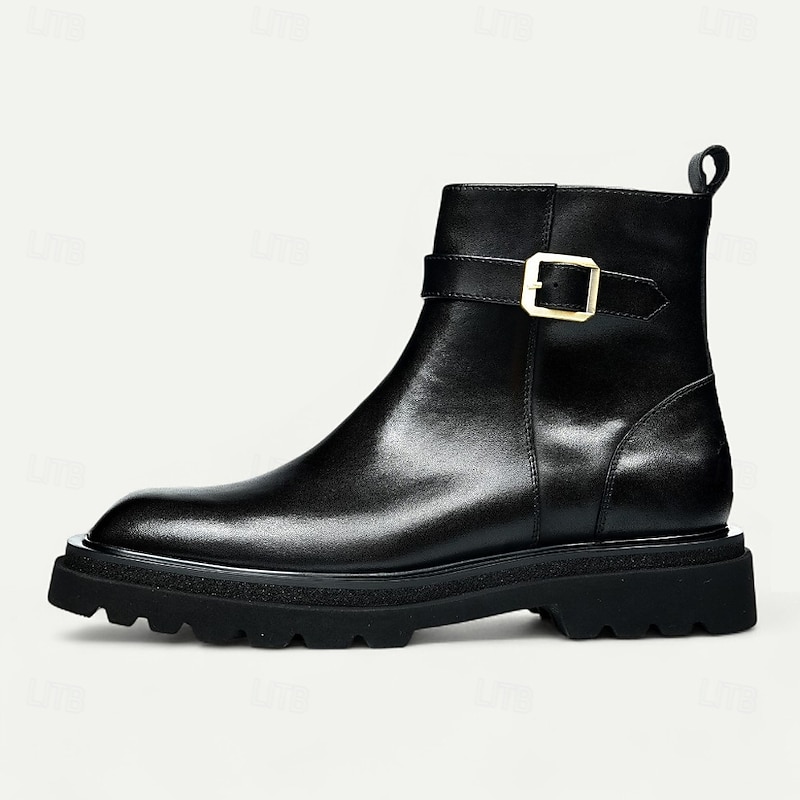 Men's Brown Buckle Ankle Boots Classic Side Zip Casual Boots with Decorative Strap for Office, Parties and Daily Outfits 4