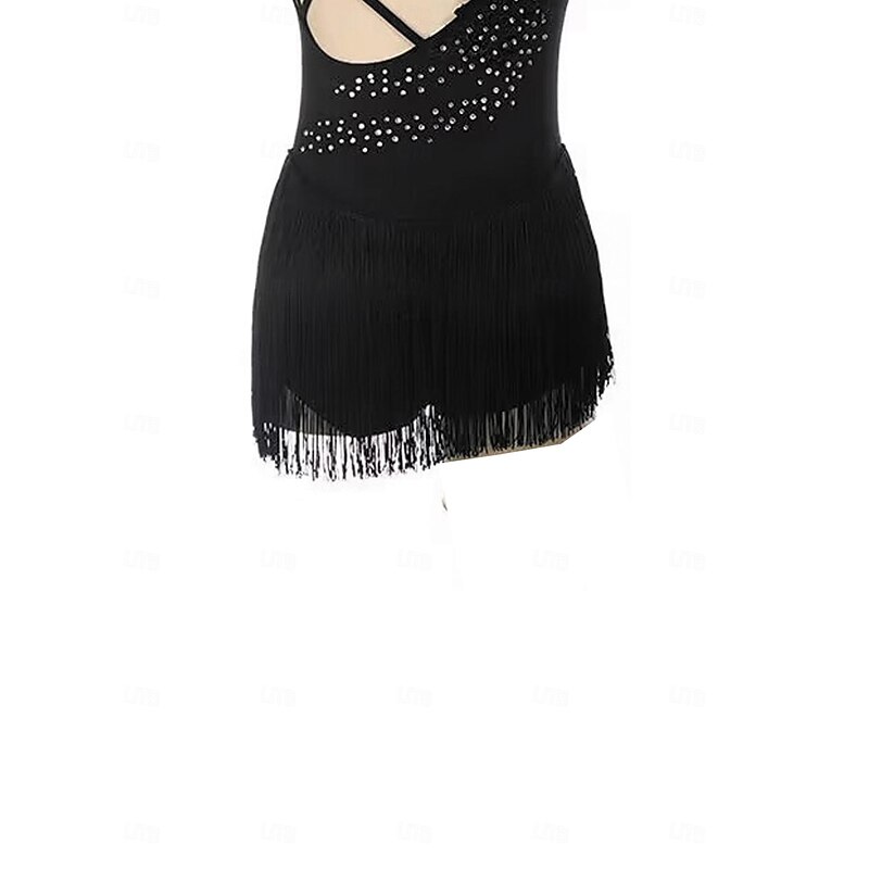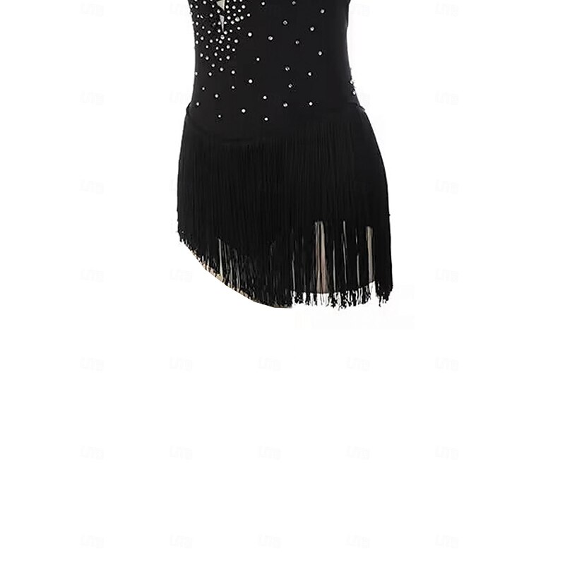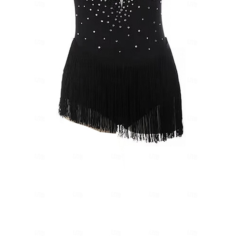 More information about Figure Skating Dress Women's Girls' Ice Skating Dress Black Patchwork Tassel Mesh Spandex Stretchy Training Practice Professional Skating Wear Thermal Warm Crystal / Rhinestone Sleeveless Ice Skating