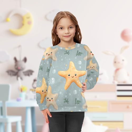 JUNZAN Cute Starfish Grey Big Girls Hooded Sweatshirt Fleece Hoodies for Girls Party 4T 6