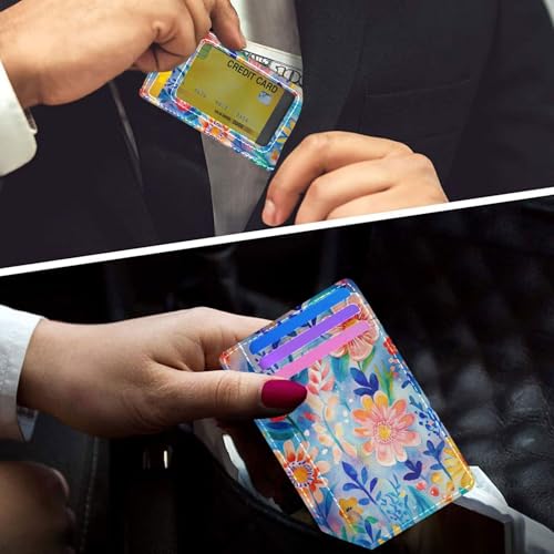 Boho Style Colorful Bloom leather women's slim wallet With Cash Slot RFID Blocking wallet for cards for Men and Women 4